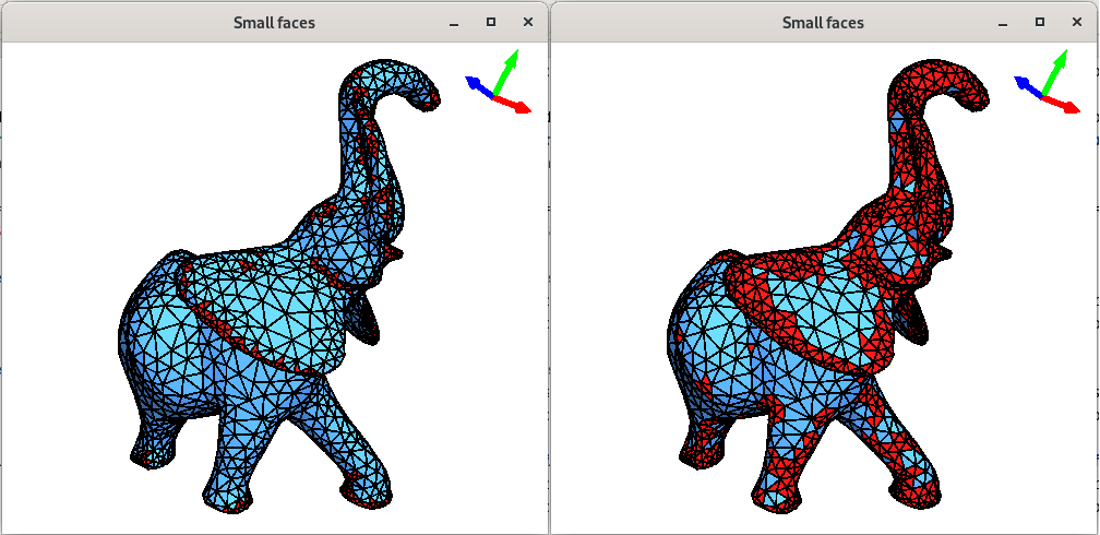 Figure 117.7 Two examples of drawing of a mesh with small faces in red. Left: With the initial threshold. Right: After having increased the threshold.
