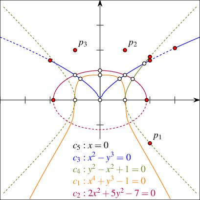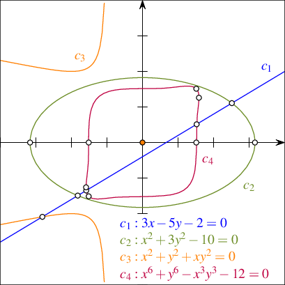 What constitutes valid curves that can be handled by the 2D Arrangements package is discussed in detail in Section The Geometry Traits, where the models of the traits classes are described. However, when we cite combinatorial complexity bounds or bounds on the resources (i.e., running time and storage space) required by algorithms, we often postulate stricter assumptions on the input curves. The prevalent term in use is that the curves are well behaved, which may have different interpretations in different settings. If we are concerned with combinatorial complexity bounds for curves embedded in a two-dimensional surface, then the standard assumptions are that (i) each curve is non-self-intersecting (a so-called Jordan arc) and (ii) every pair of curves intersects in at most some constant number of points. For algorithmic purposes we need to require more since we assume that any operation on a small constant number of curves takes unit time. In this sense arcs of algebraic curves of degree bounded by a constant (namely the zero set of bivariate polynomials of constant maximum total degree) are well behaved. Naturally, what are typically considered well-behaved surfaces in \(\mathbb{R}^3\) is even more complicated to state.