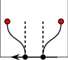 Exactly one endpoint corresponds to an existing arrangement vertex. (We distinguish between a vertex that corresponds to the left endpoint of the inserted curve and a vertex that corresponds to its right endpoint.) In this case we have to create a new vertex that corresponds to the other endpoint of the curve and to connect the two vertices by a pair of twin halfedges that form an "antenna" emanating from the boundary of an existing connected component. (Note that if the existing vertex is isolated, we need to form a new hole inside the face that contains this vertex, essentially falling back to the handling of the previous case, naturally, skipping the creation of the existing vertex.)