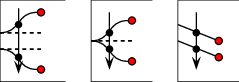 When an \(x\)-monotone curve is inserted into an existing arrangement, such that the interior of this curve is disjoint from the interiors of all curves in the arrangement, only the following three scenarios are possible, depending on the status of the endpoints of the inserted curve: