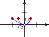The Arrangement_2 class offers insertion functions that perform the special insertion procedures listed above, namely, insert_in_face_interior(), insert_from_left_vertex(), insert_from_right_vertex() and insert_at_vertices(). The first function accepts an \(x\)-monotone curve \(c\) and an arrangement face \(f\) that contains this curve in its interior. The other functions accept an \(x\)-monotone curve \(c\) and handles to the existing vertices that correspond to the curve endpoint(s). Each of the four functions returns a handle to one of the twin halfedges that have been created; more precisely: