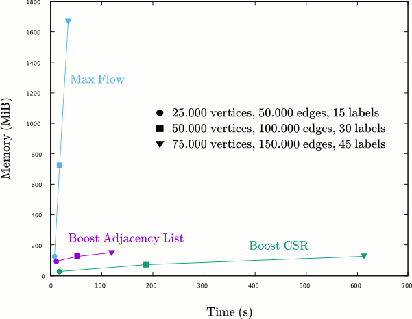 Figure 106.4 Comparison of time and memory consumed by the different alpha expansion implementations.