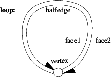 The data structure provided here is also known as the FE-structure [9], as halfedges [6], [2] or as the doubly connected edge list (DCEL) [3], although the original reference for the DCEL [7] describes a different data structure. The halfedge data structure can also be seen as one of the variants of the quad-edge data structure [4]. In general, the quad-edge data can represent non-orientable 2-manifolds, but the variant here is restricted to orientable 2-manifolds only. An overview and comparison of these different data structures together with a thorough description of the design implemented here can be found in [5].
