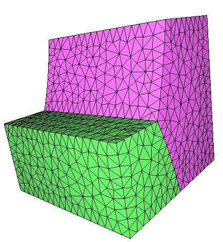 The following example shows how to generate a mesh from a polyhedral complex that forms a bounded domain. The domain is defined by a group of polyhedral surfaces that are conformal. For each facet of the input polyhedral surfaces, the ids of incident subdomains are known. The input surfaces intersect along polylines that are considered as sharp features, and protected as for all domain types in this Section.