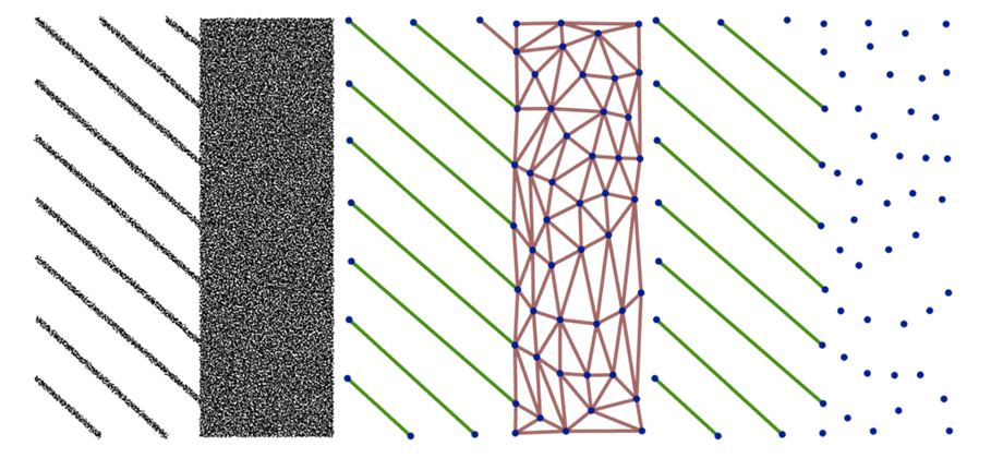 Figure 70.9 depicts an input point set sampling a set of line segments and a solid area. Depending on the targeted number of points in the output, the solid area is approximated by a set of evenly sampled isolated vertices.