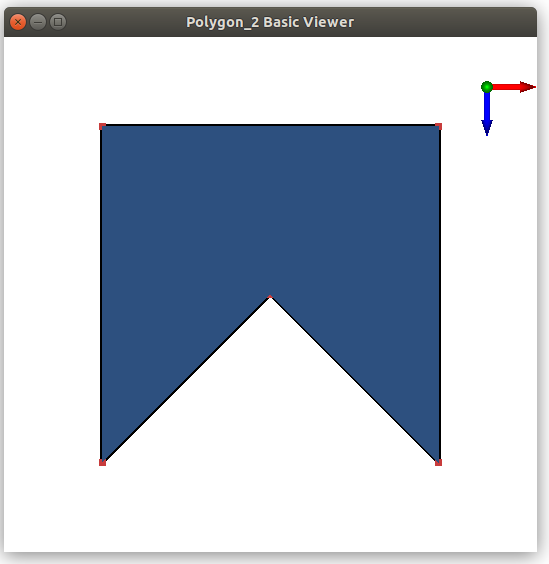 A polygon can be visualized by calling the CGAL::draw<P>() function as shown in the following example. This function opens a new window showing the given polygon. A call to this function is blocking, that is the program continues as soon as the user closes the window. Versions for polygons with holes and multipolygons with holes also exist, cf. CGAL::draw<PH>() and CGAL::draw<MPH>() .