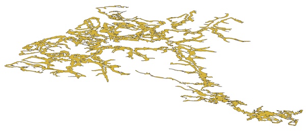 First, the polygon exterior is labeled. For this, all of the faces that can be accessed from the exterior without passing through an edge are labeled as exterior faces.