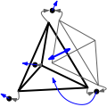 The cell class of a triangulation data structure stores four handles to its four vertices and four handles to its four neighbors. The vertices are indexed 0, 1, 2, and 3 in a consistent order. The neighbor indexed \( i\) lies opposite to vertex i.