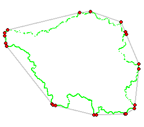 In addition to the functions for producing convex hulls, there are a number of functions for computing sets and sequences of points related to the convex hull.