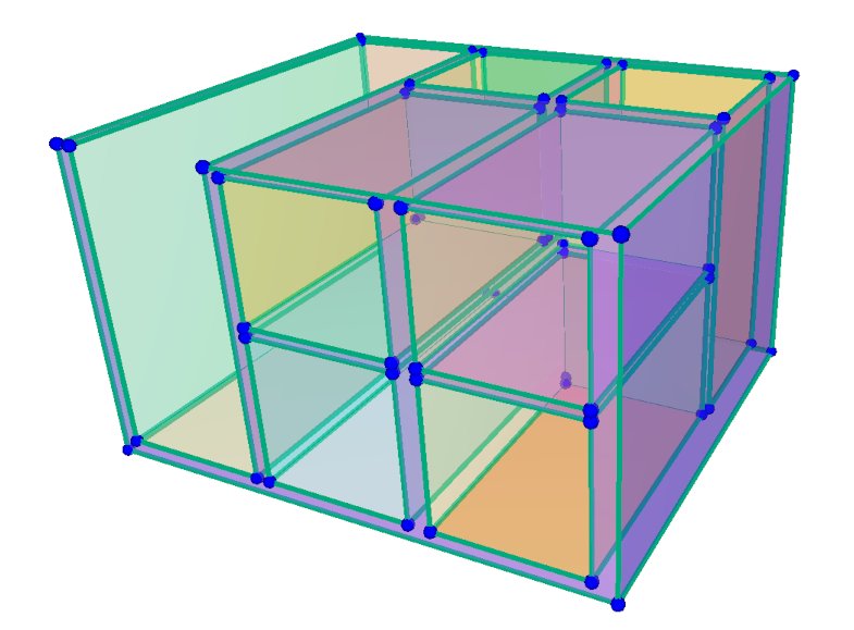 A PLC can also be represented as a polygon soup: a collection of vertices and a set of polygons, where each polygon is defined by an ordered list of vertices, without explicit connectivity information between polygons. For a polygon soup to represent a valid PLC, its polygons must satisfy the polygonal faces properties described in the previous section. This approach allows for the representation of non-manifold geometries; however, polygons in a polygon soup cannot have holes.