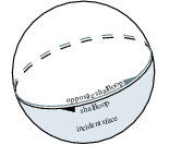 The intersection of a halfspace going through the center of the \( \epsilon\)-sphere, with the \( \epsilon\)-sphere, results in a halfsphere which is bounded by a great circle. A binary operation of two halfspheres cuts the great circles into great arcs.