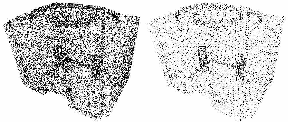This CGAL component implements methods to analyze and process 3D point sets. The input is an unorganized 3D point set, possibly with normal attributes (unoriented or oriented). The input point set can be analyzed to measure geometric properties such as average spacing between the points and their k nearest neighbors. It can be processed with functions devoted to the simplification, regularization, upsampling, outlier removal, smoothing, normal estimation and normal orientation. The processing of point sets is often needed in applications dealing with measurement data, such as surface reconstruction from laser scanned data (see Figure 87.1).