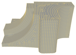 Surfaces with boundaries are handled naturally. However, it is important to note that in these cases, the surface does not explicitly identify the boundary and loops around it. In many cases, this will lead to boundary edges being shared by neighboring triangles of the surface that are identical except for their orientation. The boundaries may be made explicit by identifying orientation discrepancies between neighboring triangles, but this functionality is not provided by this package. Figure 69.6 shows a reconstructed surface with a boundary.