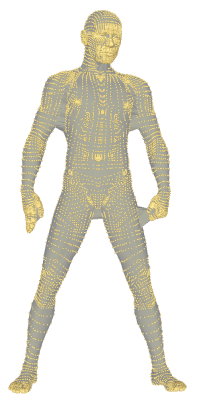 Many point sets contain point attributes such as normals or colors. Because the scale-space surface reconstruction constructs the connectivity between the original points, any point attributes that make sense for a surface can be propagated to the reconstruction. Figure 69.11 shows the surface reconstructed for a set of points with colors.