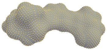 As described above, ideally the point set regularly samples the surface. For example, for each point its six nearest points lie at roughly equal distance forming a rough hexagon around the point. This will generally not occur when working with realistic data. The scale-space method can reconstruct very unevenly sampled surfaces, as Figure 69.7 shows. However, as noted earlier the sampling regularity and allowed concavity form a trade-off. Figure 69.8 shows a case where we cannot simultaneously model the concave regions and sparse regions correctly.