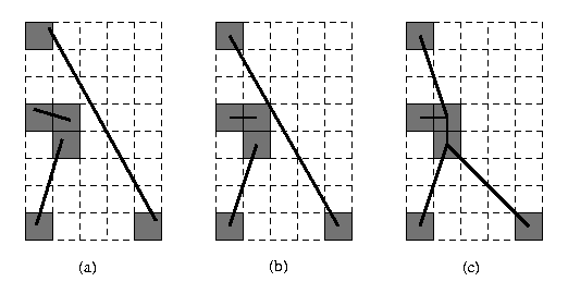 Figure 38.2 An arrangement of segments before (a), after SR (b) and ISR (c) (hot pixels are shaded).