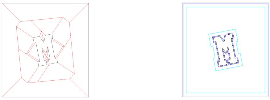 Figure 21.8 Exterior skeleton obtained using a frame (left) and 2 sample exterior offset contours (right)