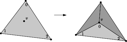 Figure 42.2 Insertion of a new vertex, splitting a face