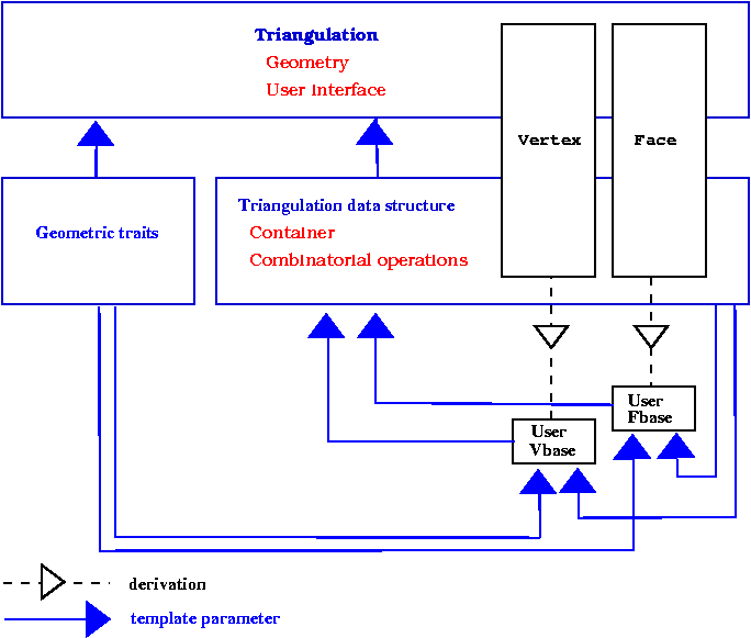 This design allows the user to plug in the triangulation data structure his own vertex or face classes tuned for his application.