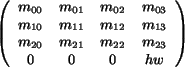 In three-dimensional space we have a 4 × 4 matrix (mij)i, j=0 3. Entries m30, m31, and m32 are always zero and therefore do not appear in the constructors.